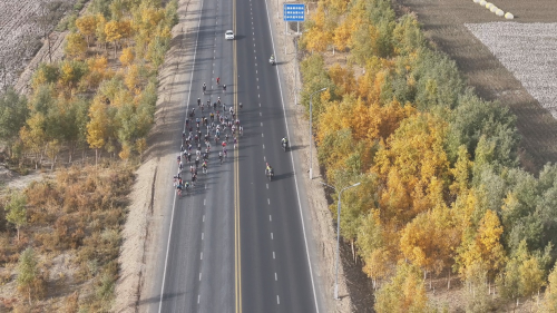 同时,大众组赛事中,随着发令声响起,选手们沿着环湖赛道出发。与精英组的竞速不同,选手们绕湖6圈,全程66.5公里,选手们一边骑行,一边欣赏着沿途美景,只为在金秋沙雅留下独特记忆。