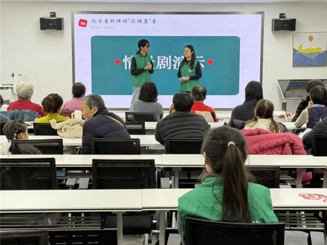 为让老人们更加感受到诈骗案例可能就发生在身边,团队成员进行虚假理财“杀猪盘”案场景还原,一人饰演一位不怀好意的诈骗分子,一人饰演一位上当受骗的老年朋友。诈骗分子的层层套路与老年朋友的心理活动演绎得真实而生动,表演过程中方言的运用更是拉近了与观众的距离,让老人们看得真切,不时发出阵阵感叹。