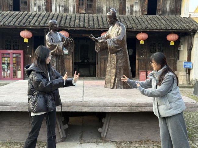 “东王村将越剧文化与乡村发展深度融合的实践,为我们的项目提供了重要思路。”团队负责人表示,此次调研旨在挖掘越剧文化中的创新基因,探索传统戏曲与现代业态的融合路径,助力越剧文化通过年轻化、市场化方式实现活化传承。让百年越韵成为产业融合创新的重要动力。(作者:冯雨晴 | 摄影:毛姝沁 )