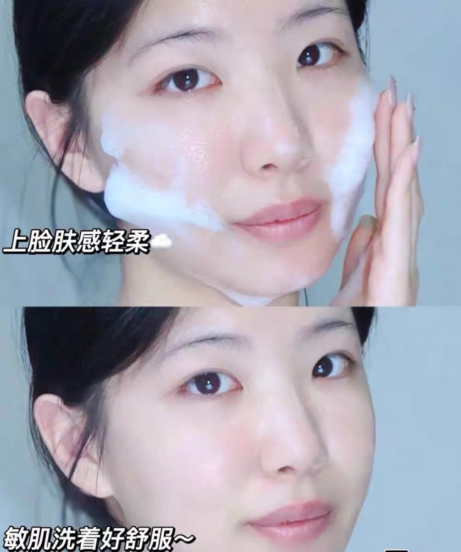 它的起泡效果优秀,挤少量就能揉搓出云朵般绵密的泡沫,上脸按摩触感舒适,能深入清洁毛孔污垢,同时不会过度清洁损伤肌肤屏障。洗完脸不假滑、不紧绷,肌肤呈现水润润的状态,兼顾清洁力与养肤力,适配干皮、敏感肌、混干皮人群。